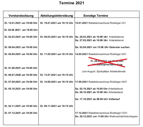 Die Jahreshauptversammlung findet am Freitag, den 16.07.21, um 19.30 Uhr statt, nicht am Fr. 28.05.21.
